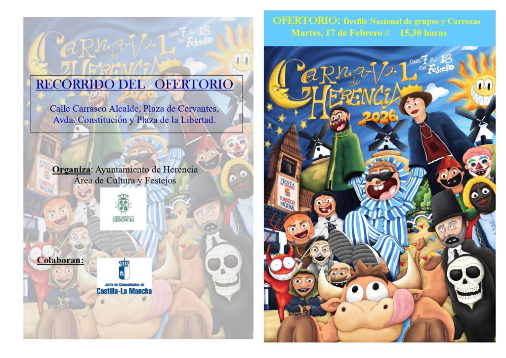 Desde Carnaval de Herencia D.O. invitamos a vecinos y visitantes a disfrutar de un Ofertorio que une tradición, creatividad y patrimonio vivo. ¡Nos vemos en las calles de Herencia!